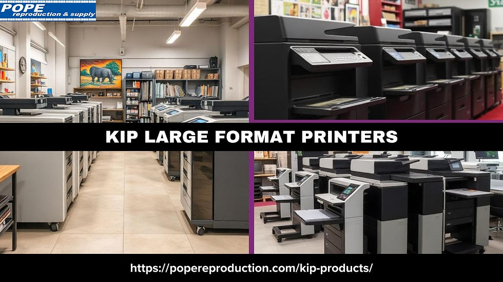 Materials for marketing efforts often require to be striking, obvious and hard to ignore. KIP large format printers are very helpful in this situation. KIP's cutting-edge equipment is used by several Amarillo print companies to produce huge images with amazing color accuracy and clarity. Promotional needs such as trade fair graphics, construction site signage, outdoor banners for events and sales, and retail posters and wall displays are all provided by large format printing. These better prints support messages in high-traffic areas and draw attention to businesses from a distance. Visit Pope Reproduction & Supply today.